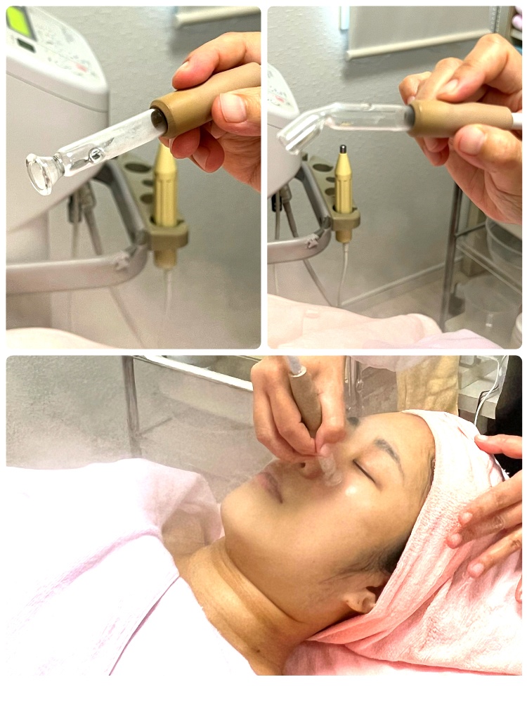 ガラス吸引管でマッサージ効果+毛穴の汚れを除去
